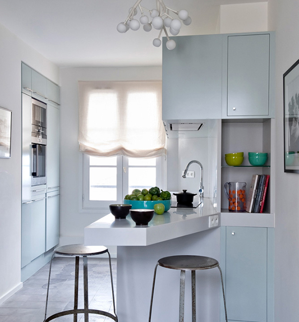 В Европе очень частая практика – снимать квартиру пополам с кем-то, или сдавать часть своей квартиры приятелю: это позволяет существенно сэкономить на квартплате и жить не в гордом одиночестве, а в компании. Эта квартира, расположенная на последнем этаже прекрасного старинного дома в центре Парижа, относится как раз к таким – здесь два постоянных жильца. Чтобы сделать пространство одинаково удобным для всех, они обратились к архитекторам из бюро Element-S. Архитекторы предложили разграничить квартиру на две равные части: приватную, в которой у каждого «соседа» по одинаково удобной спальне, и общую, состоящую из большой просторной кухни-гостиной, где они могут встречаться и принимать гостей. Гостиная объединяет дом не только с точки зрения планировки, но и колористически: здесь встречаются и «завязываются» в единую композицию абсолютно все оттенки, которые задействованы в интерьере квартиры. С одной стороны, разные зоны решены в близкой гамме, что позволяет всему жилому объему выглядеть целостным, а это всегда «играет на руку» маленьким пространствам. С другой стороны, здесь много деликатно подобранных оттенков, так что вряд ли кто-то сможет назвать интерьер скучным или однообразным.